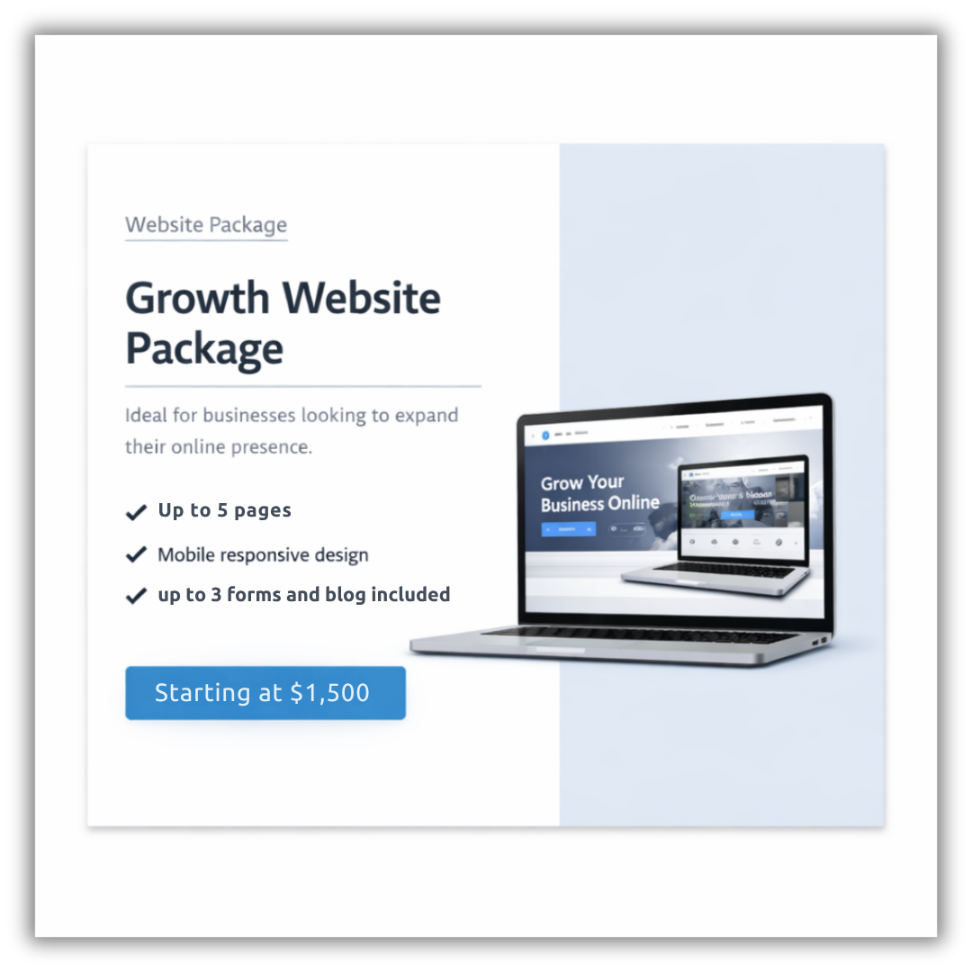 Unlike basic website packages, the Website Growth Package gives you the structure and flexibility needed to grow your business online while maintaining a clean, professional look that builds trust and drives conversions.
